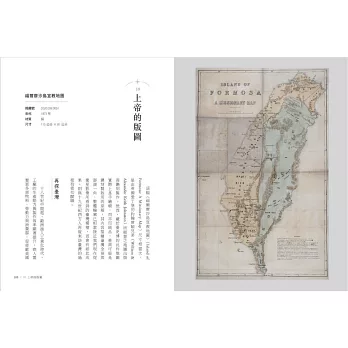 本書是以資料開放與面對大眾的方向,從館藏物件出發,結合歷史學與科學檢測分析進行研究,再以歷史普及書寫方法,與社會大眾分享臺灣地圖的精彩故事。因此,本書從大量館藏中挑選出三十幅地圖,由十一位館員採共筆協作模式進行研究與書寫。內容安排上,每一篇會先描述該圖的來龍去脈,接著在「地圖放大鏡」專欄中,針對有關該圖的時代、人物或圖像細節,以及博物館運用科學儀器發現的有趣線索等,進行深入介紹 。