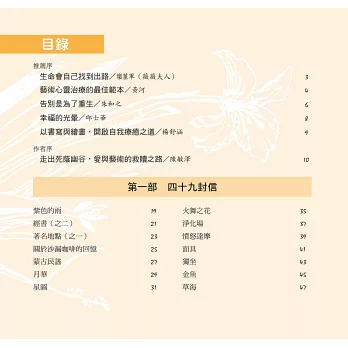 49篇短詩文完成,我的寫作能力便已恢復。原本計畫到此為止,後來卻因緣際會,讓我決定將自我療癒的心路歷程,詳細記述下來,作為人生最重大轉折點的紀錄,同時緬懷姊姊賦予我的一切。我希望藉由出版,將自己的經驗分享給有著類似傷痛的人們,或許能夠提供一些幫助。