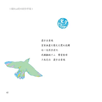 看到本書《給Blue的49封分手信》作者陳敏澤以書寫、以繪畫幫助自己復原,這是一個不僅得療癒也是自我成長的歷程,生命的意義會更彰顯。——楊舒涵/心理學講師