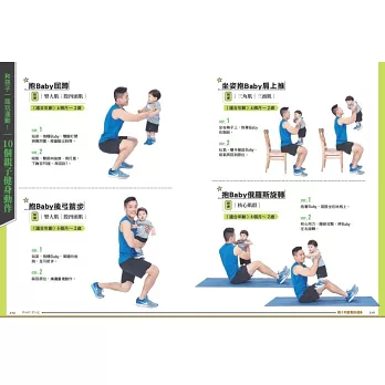 -6個月~2歲:抱著孩子做安全的負重訓練。深蹲、後弓箭步。