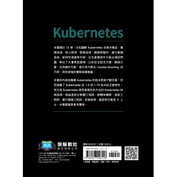 本書總計12章,分別講解Kubernetes的基本概念、實踐指南、核心原理、開發指南、網路與儲存、運行維護指南、新特性演進等內容,在生產環境中可能出現的問題,舉出了大量典型案例,比如安全設定方案、網路方案、共用儲存方案、高可用方案及Trouble Shooting技巧等,具有很強的實戰指導意義。
