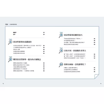 本書內容以客戶的角度出發,去探討如何面對及處理投資型保險,非常特別。本書首章在說明保單的基礎運作,作者以深入淺出的文筆探討保單的基本架構及功能,接下來探討到購買投資型保單的正確觀念及技巧,依據不同的目的來操作連結投資標的,分享作者的實務經驗。結構完整且專業,非常值得推薦給大家研讀。——莊介博博士|實踐大學風險管理與保險學系兼任助理教授
