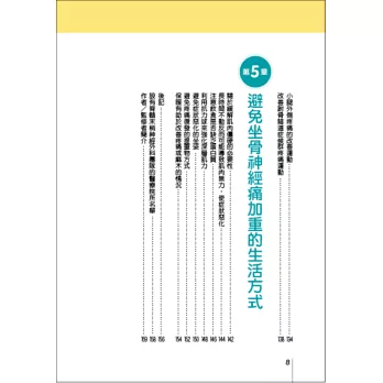 坐骨神經痛的存在就像不定時炸彈,想要擺脫一不小心就會痛噴、痛炸的惱人宿疾,就要懂得調整生活,建立良好的日常習慣,怎麼吃、怎麼坐、怎麼避免復發,從簡單的小地方做起,跟著作者的指示一步步跟疼痛Say 881!