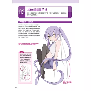 因此在這本書中,她將從零基礎教起,你可以從畫一條流暢的線開始學,慢慢進步到描繪一束髮絲、設計一種髮型、畫出搭配髮型的表情、學習各種姿勢下的頭髮變化。