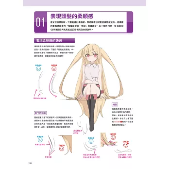 ■ 解說各種長度的頭髮畫法,包括短髮、中長髮、鮑伯頭、超長髮等