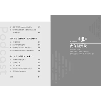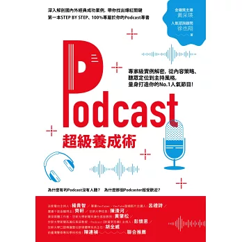 Podcast 的市場定位、聽眾特性分析、節目頻道行銷規劃、製作工具指南、主持風格設定……從0開始,帶領躍躍欲試的新人踩穩每一步,打造一個專屬於自己的不敗節目;也幫助已經踏入當中的老鳥們,檢視自己的節目,讓節目成為Podcast領域的長青樹。這是台灣第一本Podcast的專書,STEP BY STEP、100%專屬於你。