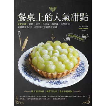《餐桌上的人氣甜點》內容豐富完整,6大主題60道最想跟著學的甜點,蛋糕、鹹派、甜派、司康、比司吉、布朗尼、泡芙、布丁、甜甜圈、鬆餅、費蘭雪、瑪德蓮、鮮奶酪、雪Q餅、銅鑼燒、造型餅乾到減醣烘焙,新手零基礎也沒問題,從初級到進階,標示難易程度,不同變化應有盡有,網路最受歡迎、詢問度最高的人氣甜點在家自己做!