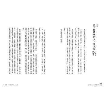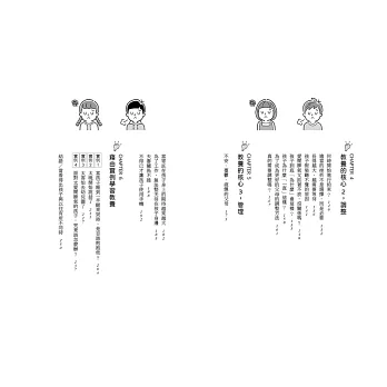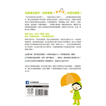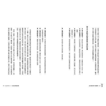 這本書沒有關於「遇到這種情況時,請這麼做、請那麼做」之類的內容,諸如此類的資訊已經太多了。死背專家為各種情況提出的解答並不要緊,重要的不是背誦解決方法,而是擁有獨立思考的能力。當父母經過冷靜、仔細思考後,按照教養原則找出解決方法時,即可有效培養「教養效能感」(自信)。所謂的教養效能感,意味的是為人父母者在教養的過程中,對於自己有能力做出適當選擇、行動的期待與信念。效能感越高,越能細膩觀察孩子的變化,並對其做出適切的行為。