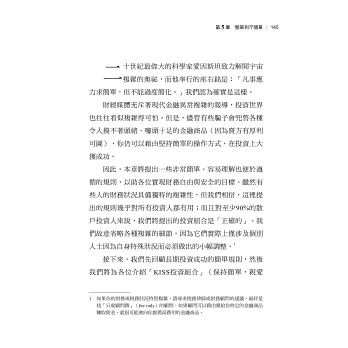 「兩位作者藉由這本書,幫了外行投資者一個大忙:他們遵循愛因斯坦重視的原則『凡事應力求簡單,但不能過度簡化』,將他們有關投資的建議,精煉至恰到好處的程度。」──大衛.史雲生(David F. Swensen),前耶魯大學首席投資長、《耶魯操盤手:非典型成功》(Unconventional Success)作者