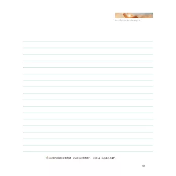 DAY 61 Cultivate patience.培養耐心 DAY 62 Try at least 1,000 times.至少嘗試一千次 DAY 63 You have time.你還有時間 DAY 64 Don’t chase.停止追逐 DAY 65 Be friends with unpopular feelings.和不受歡迎的情緒做朋友DAY 66 Imagine a future moment.想像一下未來 DAY 67 It’s okay to have bad days.偶爾也會遇上壞日子 DAY 68 It’s difficult.太困難了! DAY 69 Try thoughts that winners have.嘗試贏家的思維