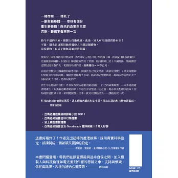 ※科技的創新與倫理的困局,這本想像大膽的科幻小說,帶來久違的科技驚悚興奮感。──華爾街日報 ※驚悚刺激、引人入勝,逐步暴露的線索、動機不斷逆轉真相,金錢與權力伸手攪動生命權與何謂自我的定義。作者刷新了這個主題的創作高度!──出版人週刊星級好評 ※腦洞大開的高概念反烏托邦小說,保證讀者大呼過癮!──科克斯書評 ※本書流暢好讀,以懸疑、身分、友誼和救贖打造精采的劇情,所有的曲折與安排,都是小說向來迷人的技法展現,並且引我們思索:何以為人?──葛雷格.盧卡,《神力女超人》等知名美漫作者