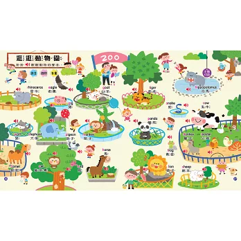 一起逛逛動物園,認識可愛的動物,再按下喇叭圖示,聽聽看牠們的叫聲吧!