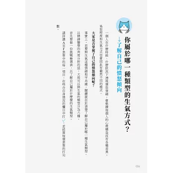 在讀懂憤怒之後,精神科醫生帶你認識6大生氣法類型,藉著逐步勾選檢測表的項目,明確分析自己的憤怒傾向,學會憤怒時最好的應對方法!
