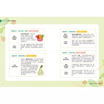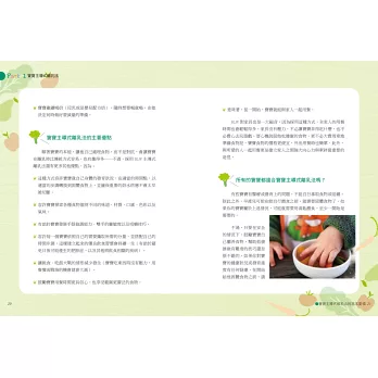 書中充滿優質的原味家庭食物,不僅寶寶喜歡吃,甚至大人也會愛吃。作法簡單、美味又營養。不需要將食物切成笑臉形狀來「引誘」寶寶,也不需要將紅椒「隱藏」起來,騙孩子吃。