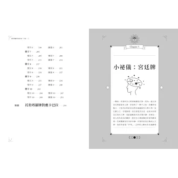 「當你翻完這本書後,相信你對應起手中的托特塔羅牌時,你將會發現自己沒留意的觀點差異與全新視角。」──孟小靖/塔羅事典館主