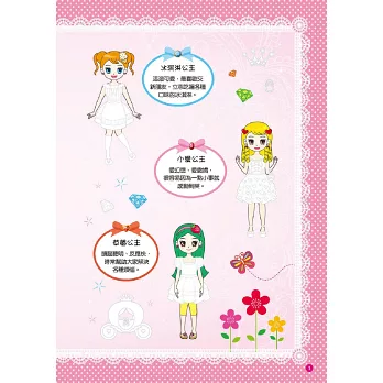 彩虹王國裡住著六位美麗的公主,每位公主都有自己的特色。她們喜歡種花、做甜點、旅行,偶爾還會舉辦歡樂的派對。你想和公主們一起度過精采又時尚的生活嗎?動動手,替公主貼上漂亮的衣服,開始好玩的遊戲吧!