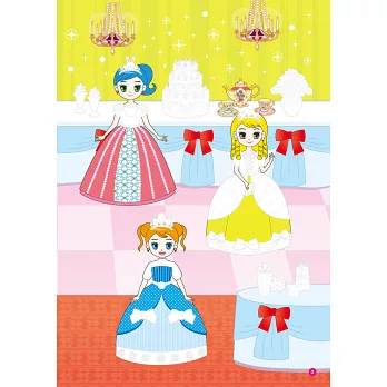 4. 整本貼完後,孩子可依照畫面,說說公主們在做什麼,創造更多新奇有趣的故事,同時訓練思考及語言能力。
