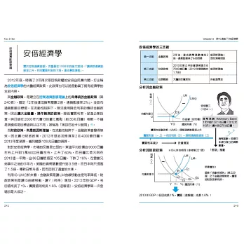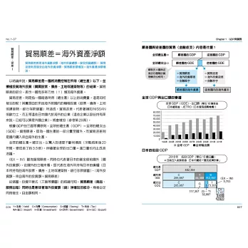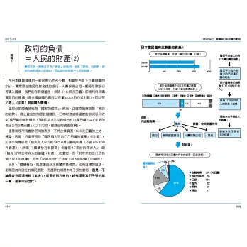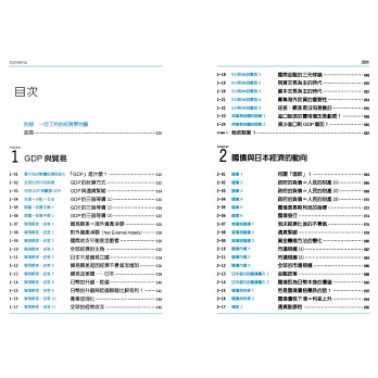從第一章的GDP與貿易開始,瞭解GDP這個不可思議的結構──使抽象的整體經濟得以具象化,並理解其數值以及貿易順逆差、國際收支表等的意義。第二章以國債來看政府經濟政策的動向。國債是國民的財產,儘管已經很龐大的全球股票市場,仍然無法與國債市場相比較。本章從國債說明與經濟泡沫化、通貨緊縮、通貨膨脹,以及預算基本平衡的關係,並解釋了一些對於經濟所產生的誤解,目的即是為讀者建立扎實的概念。