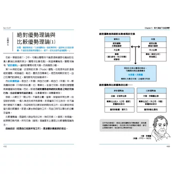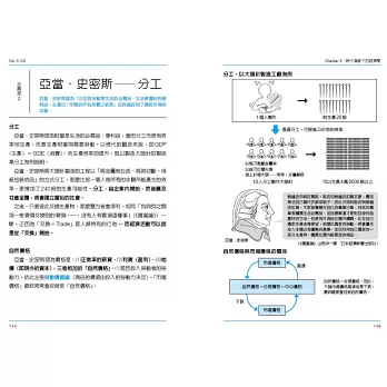 最後,第三章依次介紹推動時代變遷的經濟學理論,從經濟學的萌芽開始,到古典派的亞當‧史密斯「看不見的手」、大衛‧李嘉圖「比較優勢論」,邊際效用理論、勞動價值論,新古典派的供需曲線,以及凱因斯革命的總體經濟學誕生等,宏觀時代演進下的經濟理論變遷,透過此章奠定經濟學理論基礎。