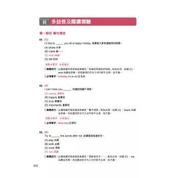 ‧題目中出現的必考詞彙,通通幫整理出來,有背就有分,省下買單字書的錢。