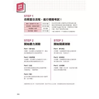 本書仿照官方考題形式編寫題目,用較實際考題稍難的試題,達到最全面的練習效果。考前衝刺、確認實力、複習所學,各種目的通通滿足!