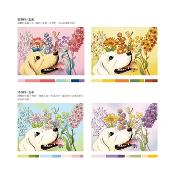 也許你有個毛孩家人,也許你是愛狗或愛貓人士,也許你是單純喜歡書裡每一幅幸福的畫面而擁有此書,現在,你可以拿起手邊的上色工具,了解簡單的配色技巧後,隨著四季色彩的變幻,與我一起進入著色的美好境界。