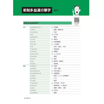 八、附常考單字、片語音檔下載QR碼。不需註冊會員,或額外安裝自己不熟悉的播放 APP,掃一次就能存在手機或電腦中,省去每次聽音檔都要掃描 QR 碼的麻煩。