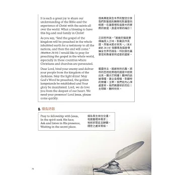 本書將教你如何用英文禱告、看懂聖經、用英文與其他國籍的基督徒交流、用英文認識新朋友和傳福音。