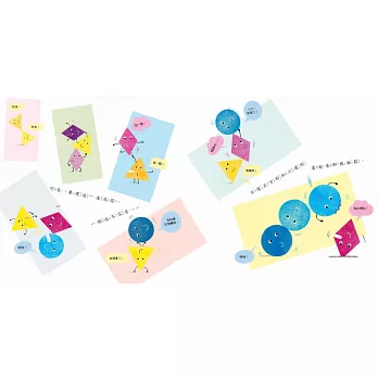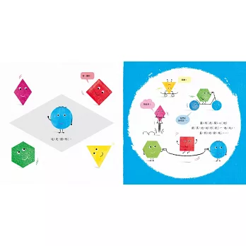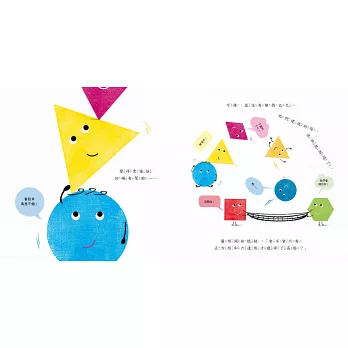 ★輕鬆建立基本幾何概念:使用圓形、三角形、正方形等各種幾何圖形為繪本角色,並擅用圖形特色來編寫故事,容易吸引剛認識並喜歡玩形狀的孩子目光,具魅力又親切感十足。