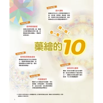 相信直覺,因為人每天的狀態可能不同,除了依「功能」選擇藥繪,也可以依自己的「喜好或感覺」來選擇。本書可以搭配第一集《神奇藥繪》,合計提供超過一百幅的藥繪,讓選擇更多元,對應更多不同的需求。