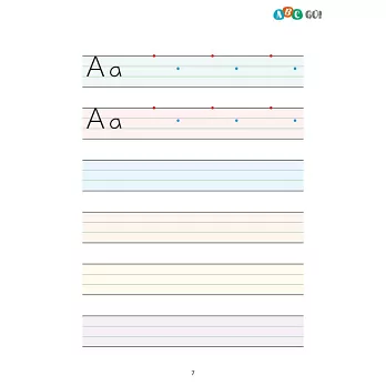 ABC GO!可練習 26 個英文字母大小寫,以下特色幫助孩子寫得更正確、學習更輕鬆: