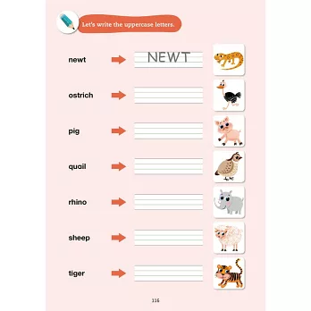 5. 每個字母均搭配單字和對應圖案,提升英語單字力。