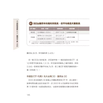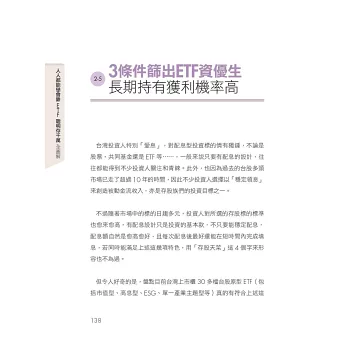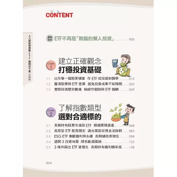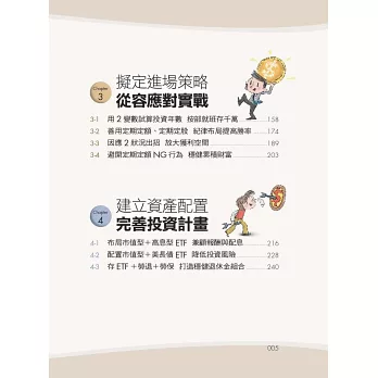 因此,本書將帶領讀者更進一步了解ETF存股的實戰情況,例如「該如何選出適合自己的ETF?」「ETF可以存嗎?」「存個股和存ETF有何不同?」「什麽樣類型的ETF適合存?」「該怎麼存效益最大?」「高息型ETF或特定產業的主題型ETF⋯⋯,這種熱門ETF可以長期持有嗎?」「如果想利用ETF做退休規畫,可以怎麼做搭配或組合?」「用ETF存到千萬資產可行嗎?」諸多疑問,本書將以平易近人的文字搭配圖像化的表格與圖解,一一為你解開ETF投資路上的種種困惑與疑難雜症。