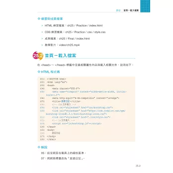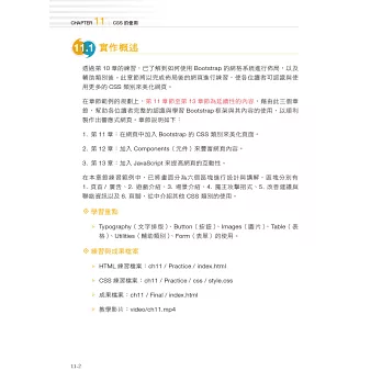 ‧以淺顯易懂的網頁範例,融入佈局、HTML5、CSS3、元件與JavaScript的使用技巧。