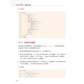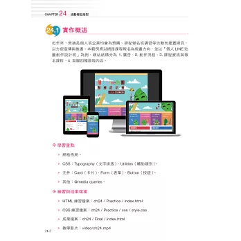 ‧完整的響應式網頁概念解說與Bootstrap運用方式,迅速跨入響應式設計領域。