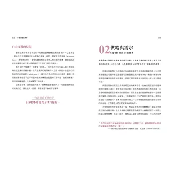 《一本書讀懂經濟學》正是教你看懂、學會用經濟學思考的好幫手。與充斥公式、函數、運算的教材不同,本書避開繁複的公式,從建立觀念開始,透過淺白的文字、貼近生活的例子,完整的解說看不見的手、供需法則、比較優勢、通貨膨脹/通貨緊縮、股市、政府赤字……等50個經濟學基本觀念,帶讀者掌握經濟學的思維架構,從而活用經濟學。