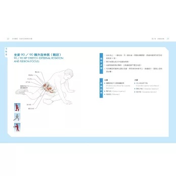 每項動作皆搭配清晰的全彩解剖圖,讓你清楚看見使用的主要和次要肌肉以及結締組織,