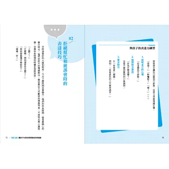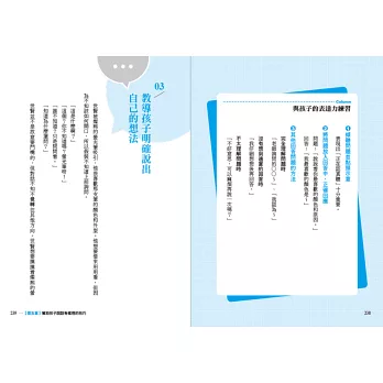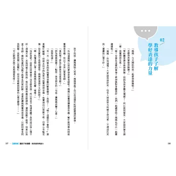 說話方法極為重要,且蘊含許多細節,最能好好教導孩子的,無非就是父母。孩子不知道如何說而慌張時、覺得冤枉時、覺得抱歉而不敢面對朋友時,能傾聽孩子、認同孩子、和孩子談心的,除了父母以外,還有其他人嗎?