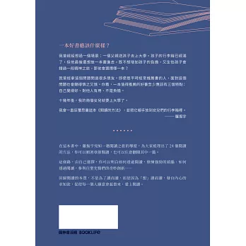 在這本書中,羅振宇宛如一趟閱讀之旅的導遊,為大家梳理出了24個閱讀的方法,你可以順著章節閱讀,也可以任意翻閱其中一篇。這條路,由自己選擇,你可以明白如何透過閱讀,修煉強勁的頭腦、如何透過閱讀,參與往聖先賢們的奇妙創新……