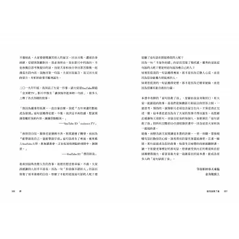 我和大家的交流方式也變了。過去在電視節目上談話時,我不知道誰是我的觀眾,還有大家是怎麼理解與接收我的話,有時我也會覺得自己在對空氣發言。不過現在我馬上就能知道誰在看我的影片,也能即時收到觀看影片的人的留言,知道大家有什麼感想。我把影片留言當成聊天軟體一樣,跟大家聊天交流。