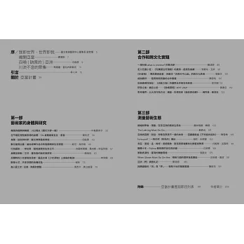 第一部「藝術家的身體與研究」呈現行為、舞蹈、劇場、新媒體及視覺藝術家們的現場展演與行動背後的創作研究與發展。他們的身體內部與所相連的特定歷史、社會過程及當代空間,啟發我們身體如何作為田調的語言與工具,而創作研究又如何充滿了以過程為目的的表演性。第二部「合作和跨文化實踐」採集了藝術家們合創與交互答辯的第一手經驗。藉由他們之間的各類撞擊與交流,展現跨文化實踐在理論框架外可能的實驗性論述。第三部「測量藝術生態」則書寫藝術家社群、當代社會及21世紀以降機構產業之間的對話與回應。進一步幫助我們檢視此時此刻身在何方,及各職類藝術工作者如何一同構築了生態,也包括這本書的所有作者:藝術家、策展人、學者、藝評人、製作人及文化機構成員等。