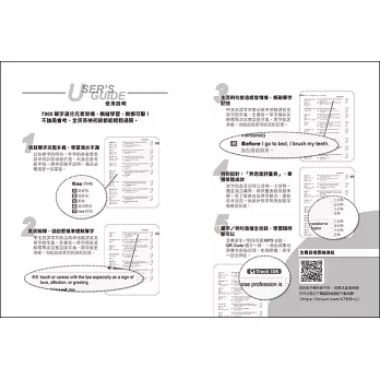 帶你用五感去感受單字。搭配生活例句及英英解釋,在腦海裡營造視覺畫面、創造英文環境,助你強化單字記憶;再利用音檔,刺激聽覺,考試沒問題,溝通也 OK。