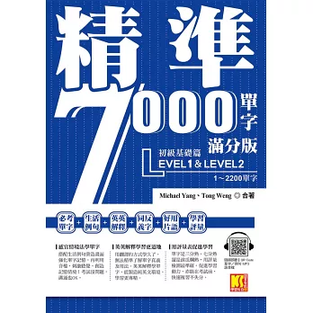 其實市面上7000單字的學習輔助教材已經相當多了,「如何選擇最好、最適合的」也常是學習者們最頭痛的問題;這亦是我們在一開始撰寫這本7000單字時,不斷在思量的。「如何能有別與市面上的7000單字書」,我們著實想了很久,於是決定讓在台灣有許多教學經驗的Michael老師和從小在美國唸書的Tong老師聯手撰寫,結合對台灣考情的了解與在地生活英語的應用,讓7000單字的選字、例句的編寫,不僅能精準的符合108年新課綱注重英文與生活結合,徹底地讓學習者有效記憶單字,更能明確地理解單字及片語如何應用在句子裡,還能同步實際在日常裡發揮口說功能,齊步提升英語力,跨大步朝大考滿分邁進。