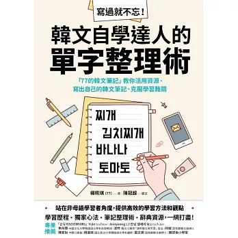 「不管是何種學習,做好筆記都有助於增進學習的效率,77一直以來專注於韓語的筆記整理術,相信本書中的『韓語單字筆記祕辛』,可以讓熱愛韓語的你實力更上一層。」──楊書維,國立政治大學韓國語文學系講師