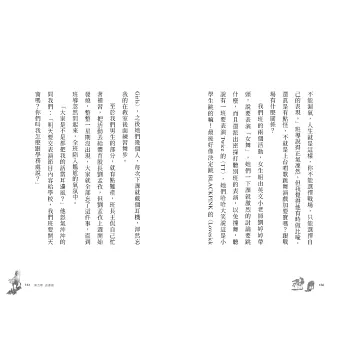 本書的故事裡交織著自由與規範,傷痕與撫慰,想像與現實,靜謐與哲思,每一篇都令人低迴不已。不只是凸顯成長的艱難,而是在在提醒我們得掌握每個微小的對話契機,逐一打磨掉灰暗的念頭,方能重拾自我價值。——黃淑貞/小兔子書坊店主