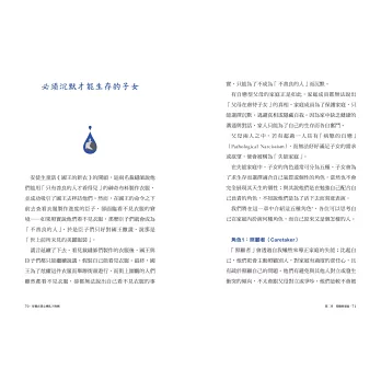 或許妳只是還沒發現,自己正身處於「自戀型人格」媽媽的控制之中──她們相信自己較他人犧牲更多也付出更多,對於成功與權力高度追求,也經常顯露出傲慢的神情;她們大多缺乏同理心,擅長透過「情緒勒索」控制並剝削女兒,樂於打擊與貶低女兒,同時也會將女兒的成就歸功於自己,將自己的不如意加諸於女兒……如果妳曾有過以下的感受,請妳停止自責與自我懷疑,認清自己的母親才是妳的苦痛的始作俑者。