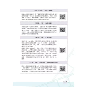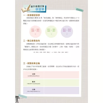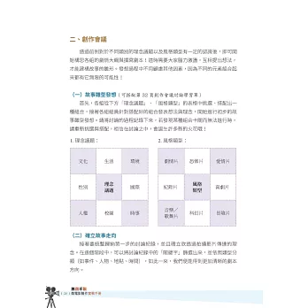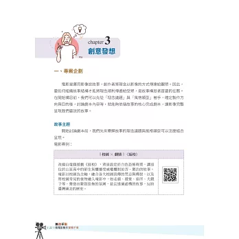 此外,書中特別介紹電影、影音創作相關的科系及未來職涯發展資訊,學習者可從中認識電影製作的要角及其職務特質與內容,作為日後選擇科系的參考方向。
