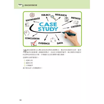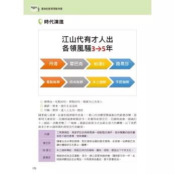 ★以非常生活化的相關範例代替枯燥的理論來說明「連鎖經營」的理論與實用性,並介紹「連鎖經營」實務上的案例,傳達「連鎖經營」的觀念又避免使用枯燥的學術性用語,協助各高中職學生及早接觸並了解「連鎖經營」相關知識。