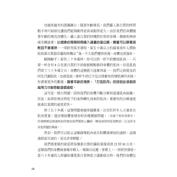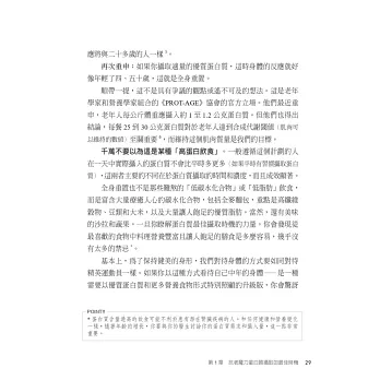 .為了驗證該方案的有效性,美國退休人員協會邀請五十至七十五歲的員工參與第一次全國性全身重置測試。過程中有超過一百名員工開始為期十二周的健康之旅,旨在預防甚至逆轉與年齡相關的體重增加和肌肉流失。即使他們透過進食和鍛煉來增強和保持肌肉質量,報告中指出參與者的體重平均減掉2.2公斤以上,其中有 3 人減掉4.5公斤或更多。在接下來的內容中,你會看到這些人—和我們一樣—發現到原來調整飲食和改變生活是這麼容易。