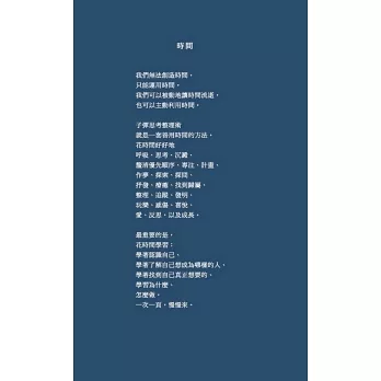 ● 時間—我們很容易迷失在過去與未來,很少警覺哪些事佔據我們的時間。